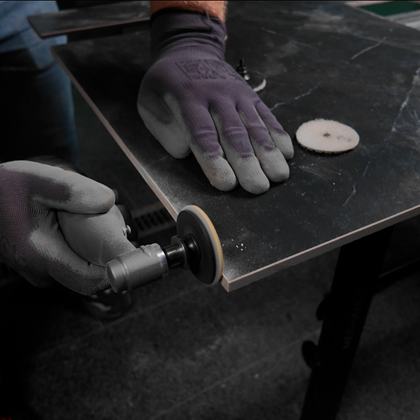 Broušení porcelánového kameniva na nástrojích s nízkým výkonem je vždy výzvou. Lešticí kotouče CoolPAD ∅50 jsou speciálně navrženy pro suché broušení porcelánu rytecky. Jejich diamantová vrstva zajišťuje konzistentně vysokou rychlost zpracování a vynikající kvalitu povrchu.